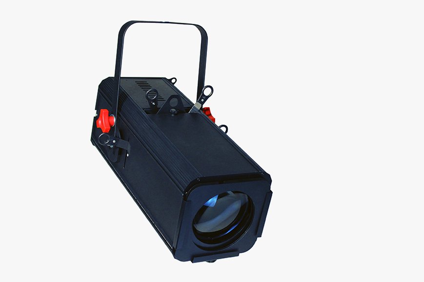 Projetor Elipsoidal, para lâmpadas de 1KW com zoom de 25° a 50°. Corpo em chapa de aço e perfil de alumínio, oferece boa dissipação de calor e design moderno.