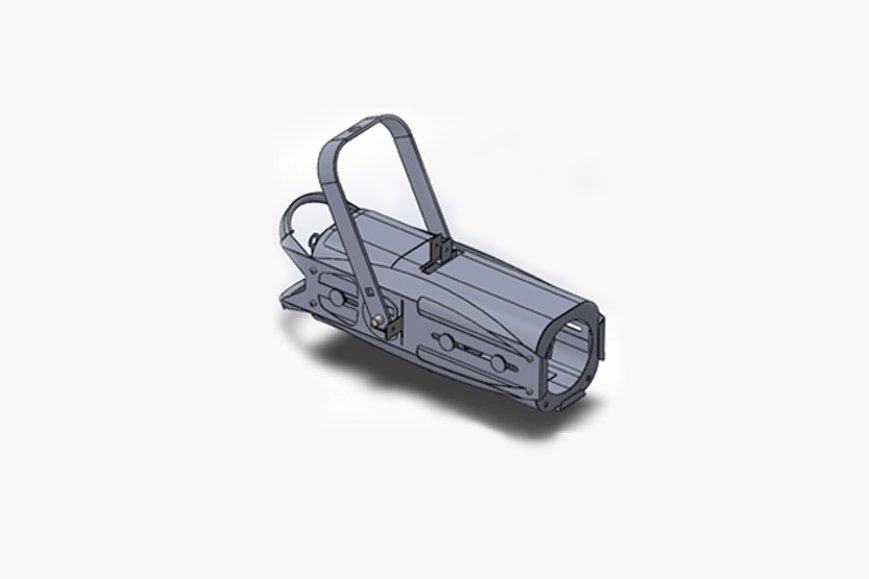 Projetor do tipo Elipsoidal para lâmpadas halógenas de até 100W (JCR / base G 6,35 ou 5,3) ou lâmpada Led com base similar ou especial (sob consulta). Sua característica é uma projeção de luz marcada com possibilidades de projeção de imagens, recortes, zoom, focalização entre outros recursos.