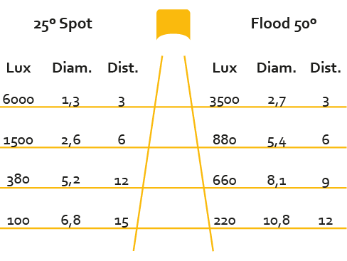 - Sistema ótico de extrema e?ciência e precisão com possibilidades de abertura ajustável de 25° à 50°. Outros ângulos de abertura podem ser solicitados, tais como: 19°,26°,36°,50°.