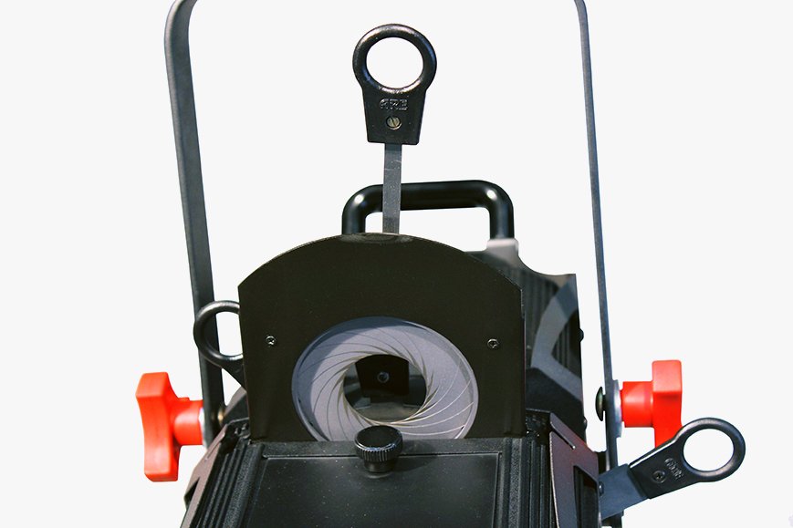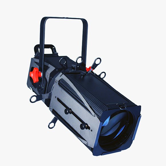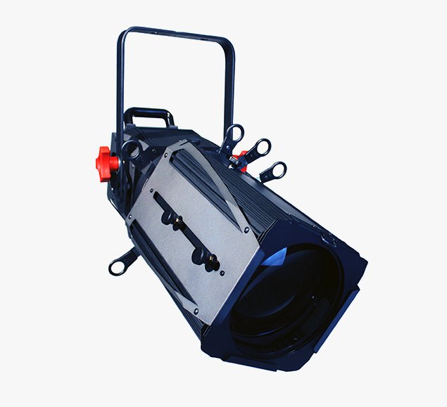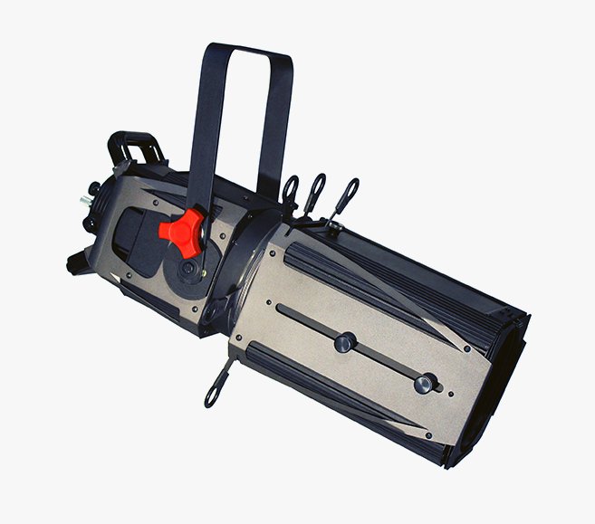 Projetor do tipo Elipsoidal para lâmpadas halógenas de 750W/800W (base G 9,5 especial). Sua característica é uma projeção de luz marcada com possibilidades de projeção de imagens, recortes, zoom, focalização entre outros recursos.